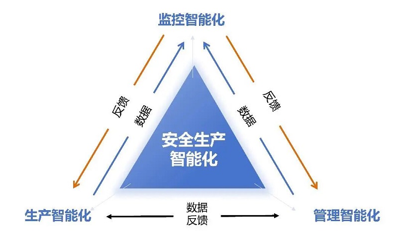 四是构建风险治理闭环机制。通过生产智能化和管理智能化建设,感知、采集并依托模型进行综合分析处理生产和管理环节产生的安全相关数据,支撑监控智能化实现对重大事故风险的预警管控,形成风险识别与预警;同时,根据监控智能化的分析研判,对生产智能化和管理智能化进行反馈,指导调整生产和安全管理环节,从而形成风险治理闭环。