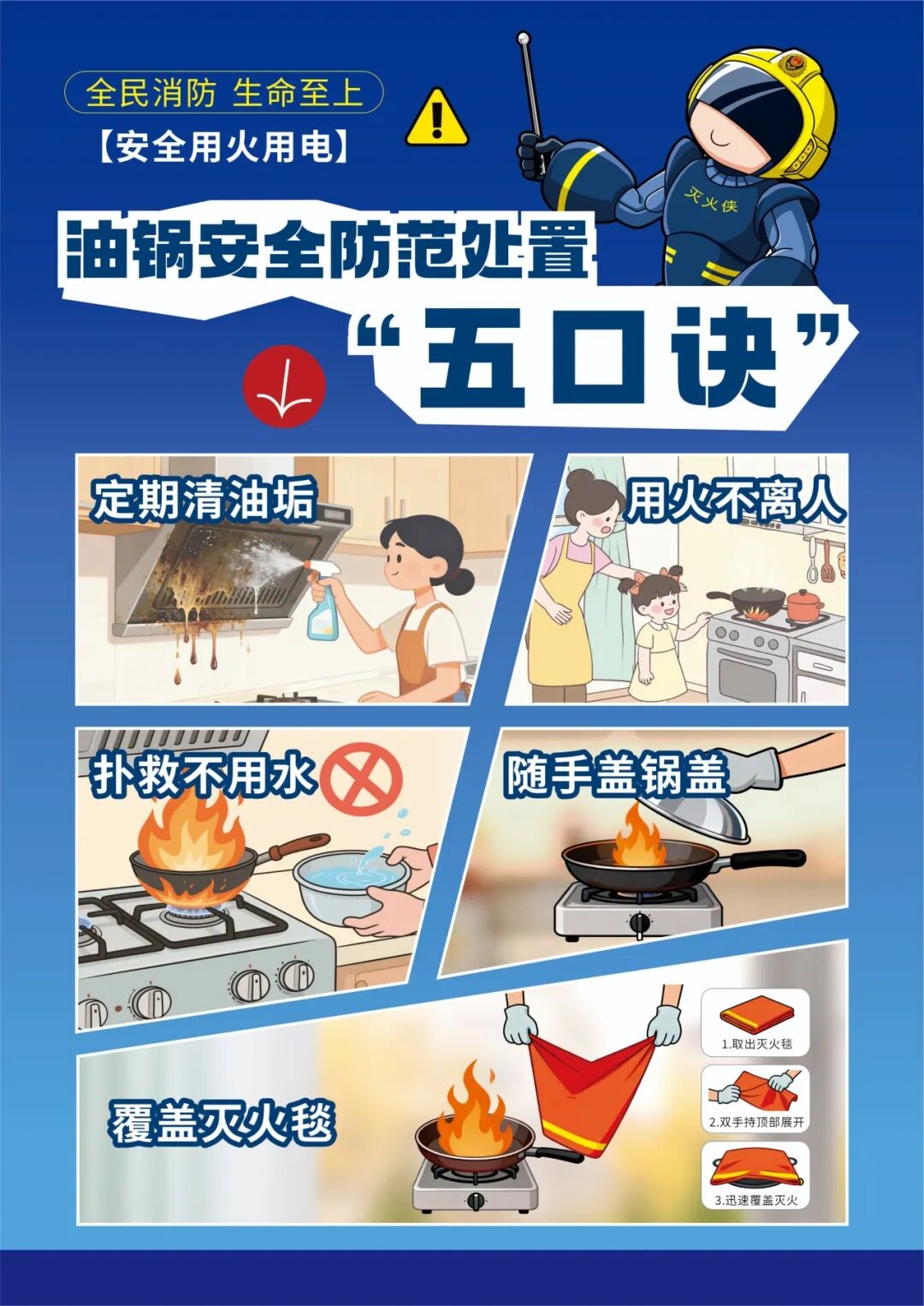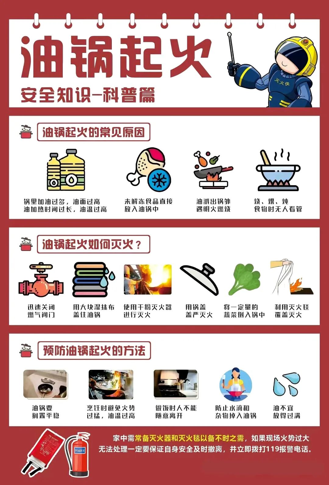 突然,油锅表面泛起微弱明火。这其实是最易扑救的初期火情。
